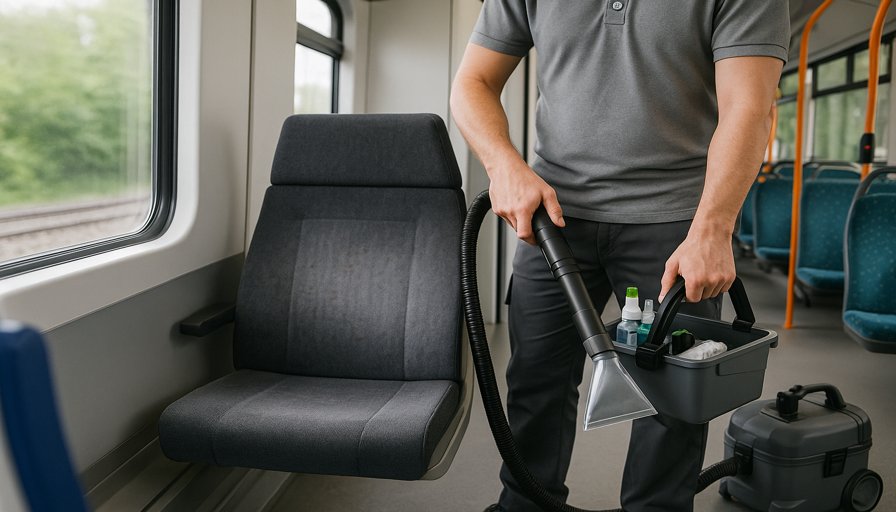 Professionelle Tiefenreinigung für Bus- und Zugausstattungen – für hygienische, langlebige und optisch einwandfreie Innenräume, unabhängig vom Fahrgastaufkommen.