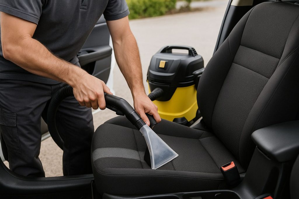 ⚡ Tiefenreinigung der gesamten Fahrzeugkabine – Entfernen von Flecken, Gerüchen, Haaren und Schmutz für eine langfristig gepflegte, repräsentative Fahrzeugflotte.
